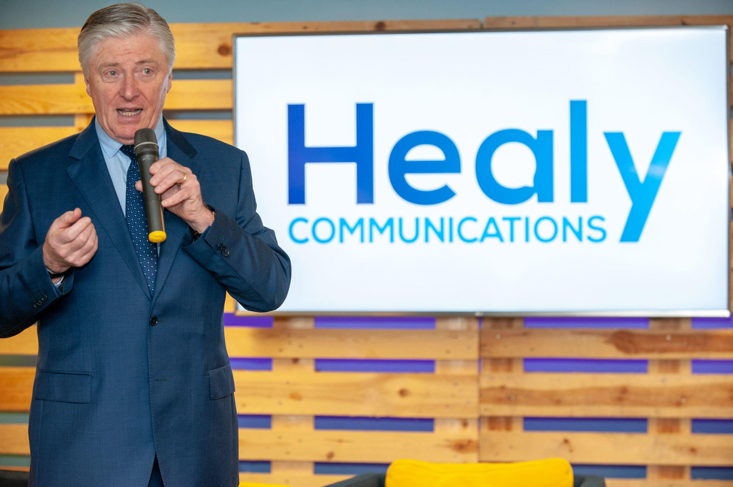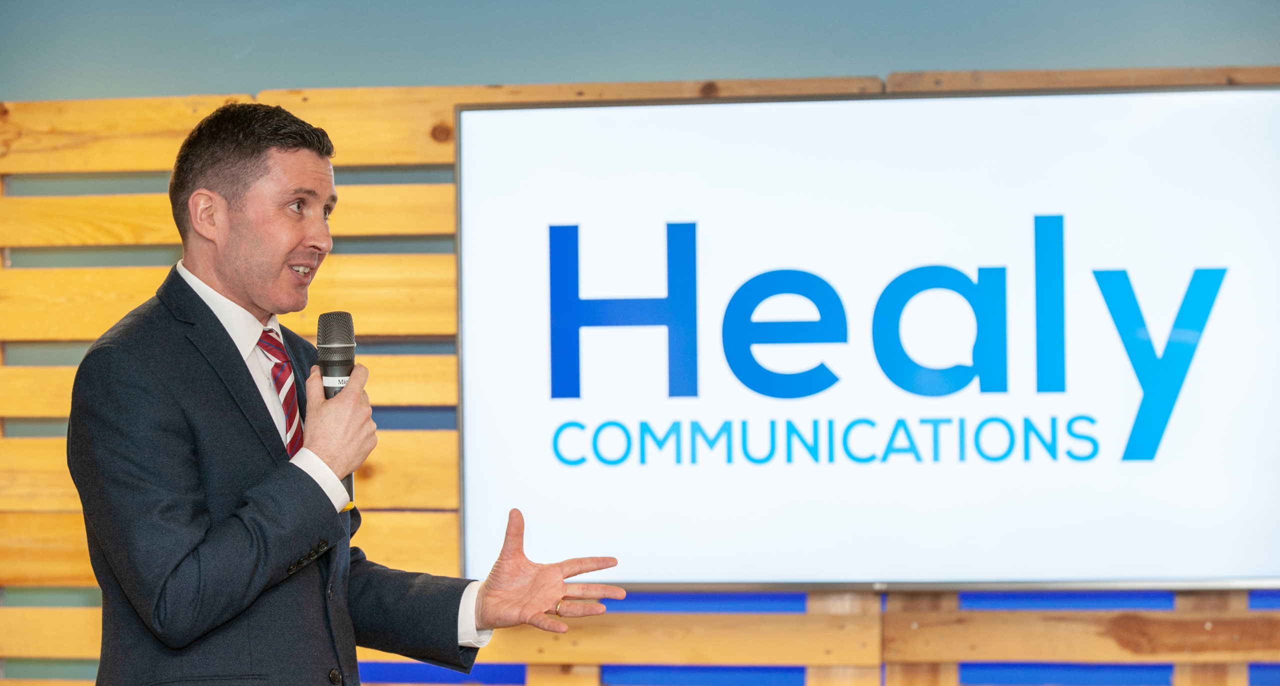 Jonathan Healy, Managing Director of Healy Communications at the launch of Healy Communications at Republic of Work last night. The company offers a suite of communications solutions for clients such as PR, crisis communication, media training and commercial podcast production.